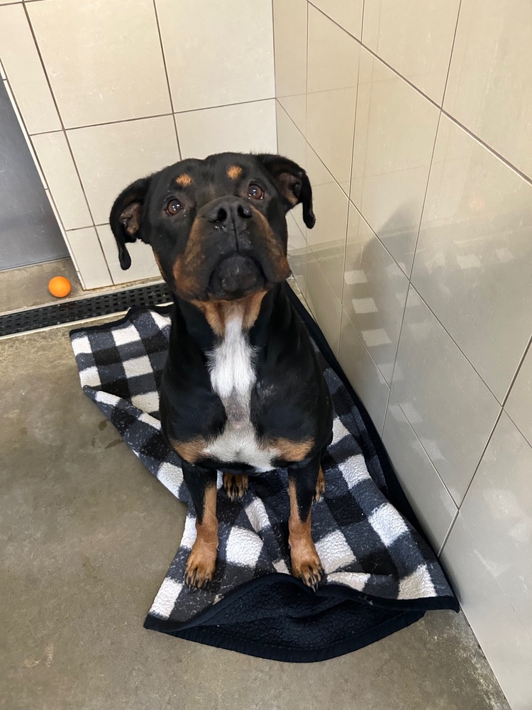 Looking for a new furry friend? Look no further than Goshen! This handsome boy is affectionate, playful, and friendly – and he's got a special trick where he can comfortably have a plushie, ball, or Kong in his mouth. He's a very talented dog with a lot of love to give. Goshen is prey driven and needs a home without cats. We would do a meet and greet with any potential doggie siblings prior to adoption to make sure it's a good fit! This handsome boy is approximately 2 years old and about 80 pounds. If you're interested in meeting Goshen, we encourage you to come and meet him today!